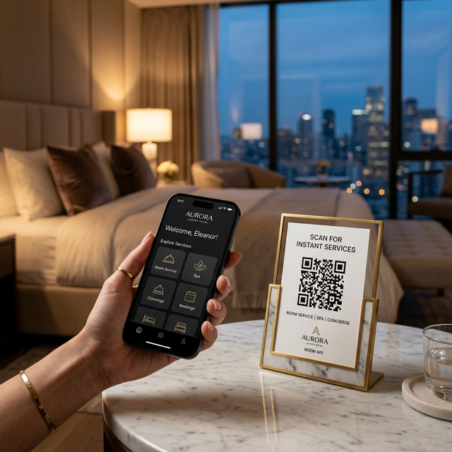 Oda servisi, temizlik ve tüm hizmetleri saniyeler içinde dijitalleştirin. Uygulama indirmeye gerek kalmadan kusursuz erişim.